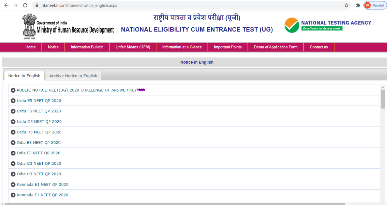Nta releases the neet 2019 answer key and omr recorded responses at its official website.